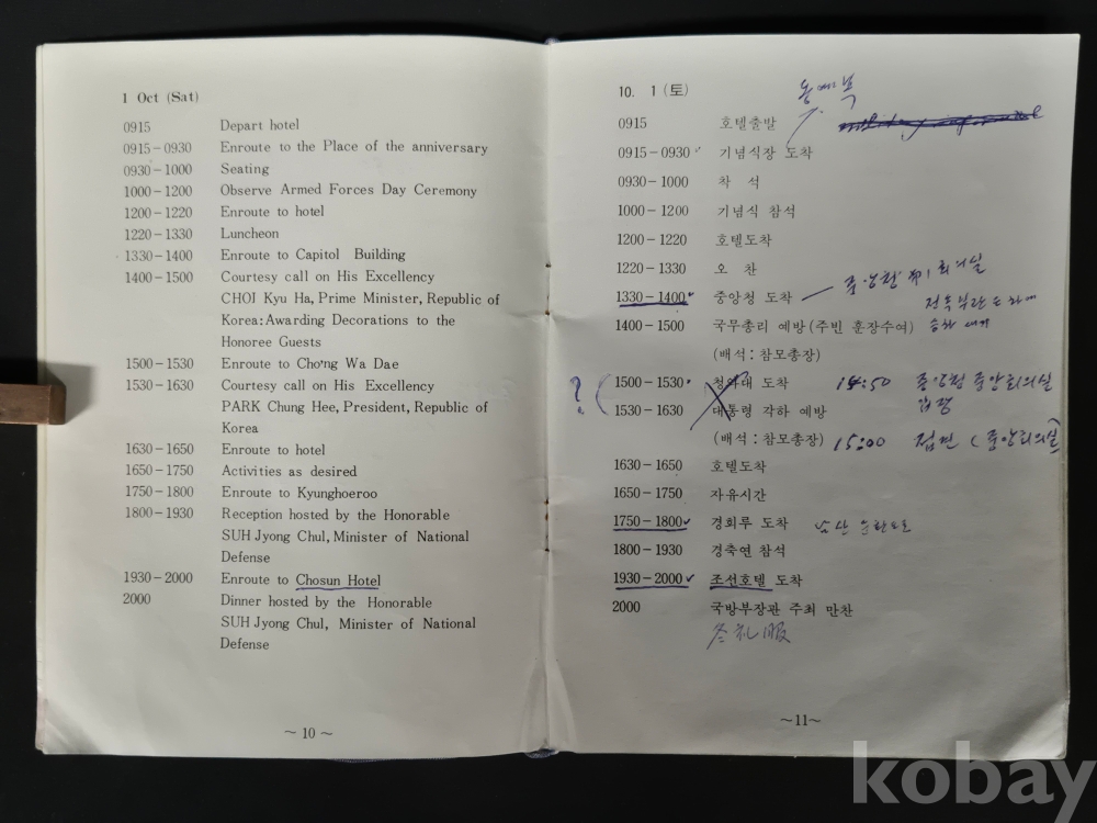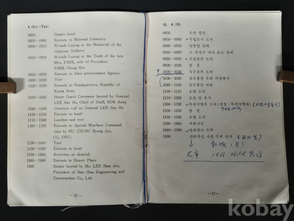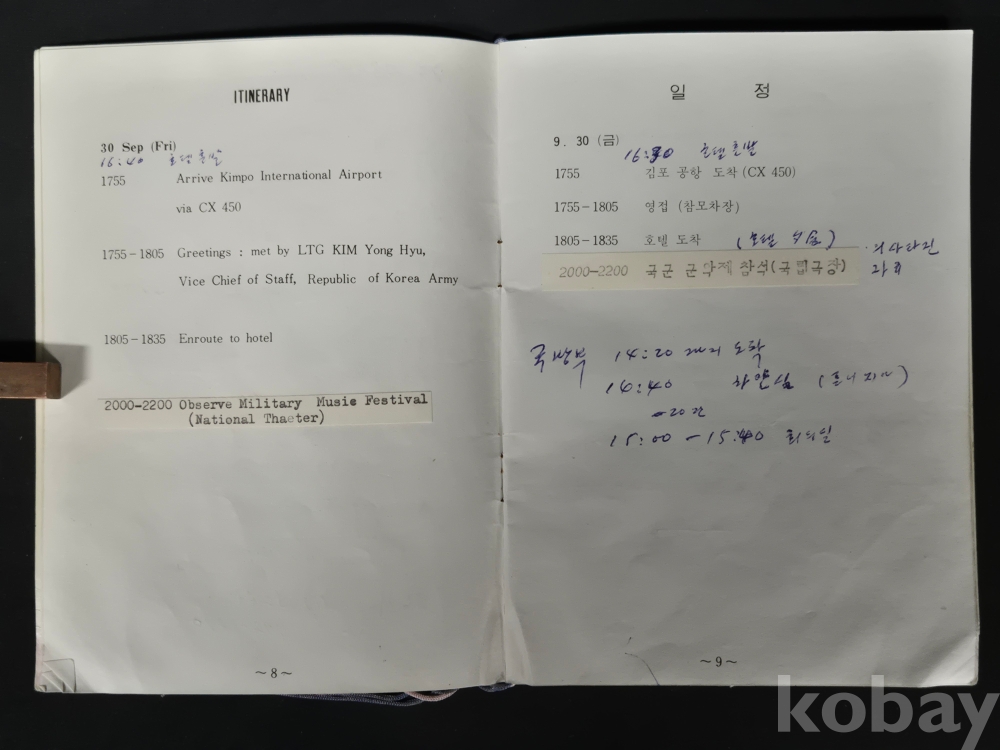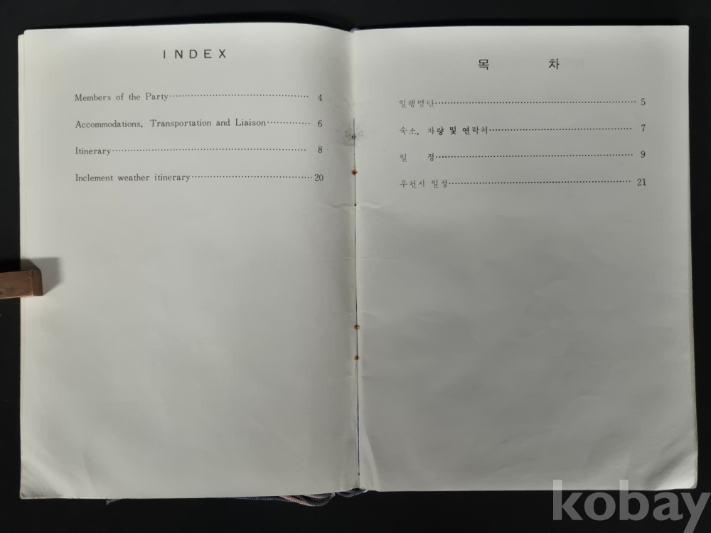 - 책자 경호 및 일정에 대한 메모 등이 있으며, 세월의 흔적이 있습니다. 낱장 없는 상태 입니다.