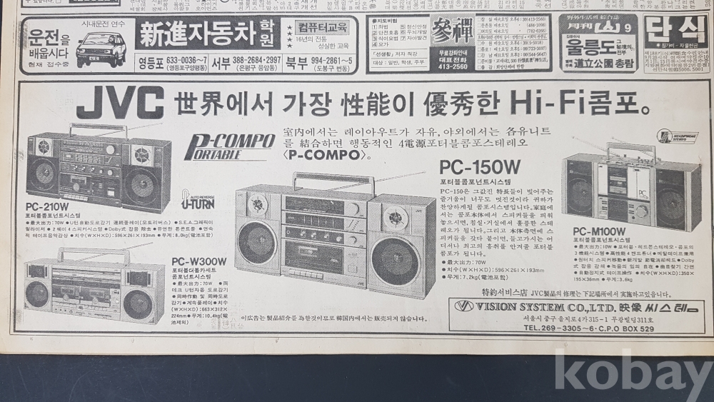 **** 1984.09.12(조선일보)/비전 시스템 JVC P-COMPO 광고포함/약 8면