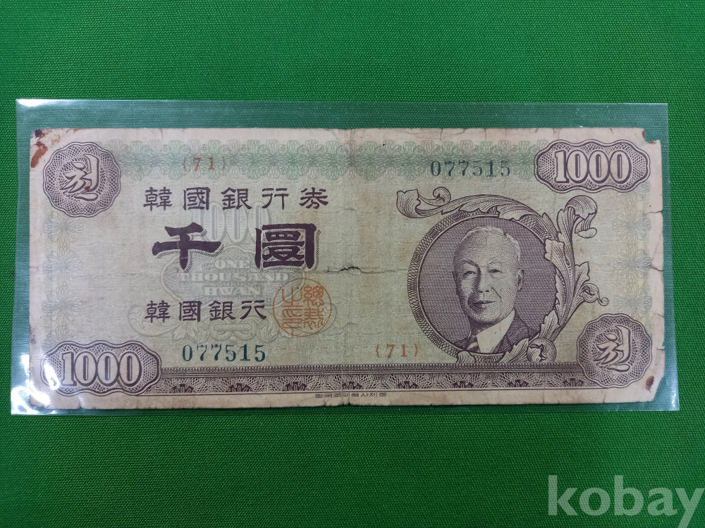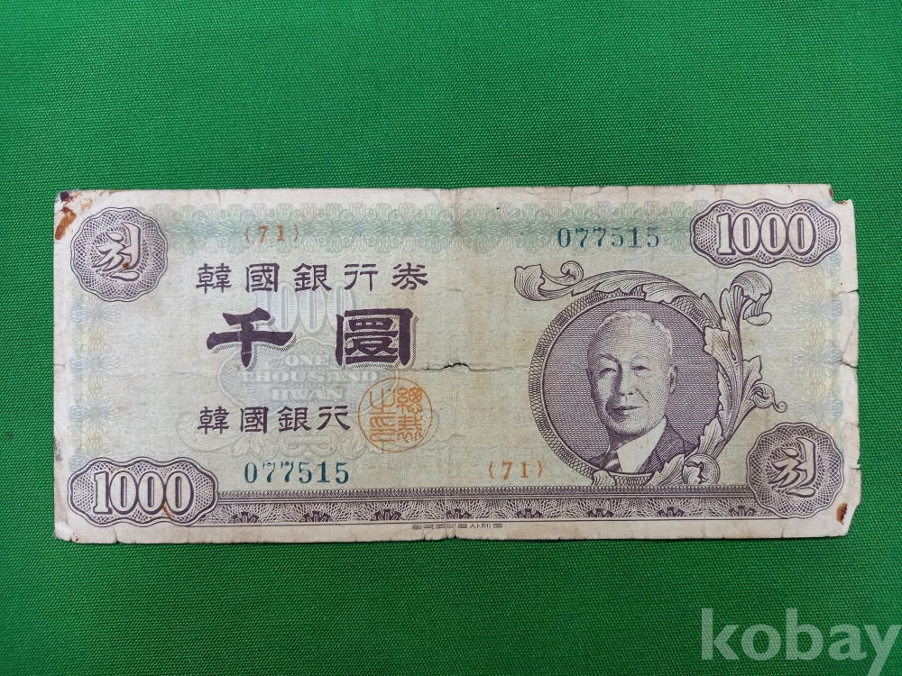 옛날지폐 / 1958년 발행 / 우이박 1,000환 / 천환 지폐