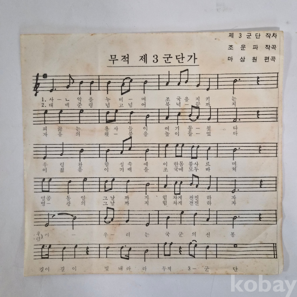 3군단가는 조운파 작곡, 마상원 편곡으로 보관 상태 양호합니다