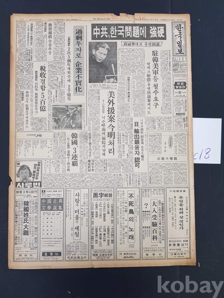 **** 1971.11.17(한국일보)/일양약품 노루모 광고포함/약 10면