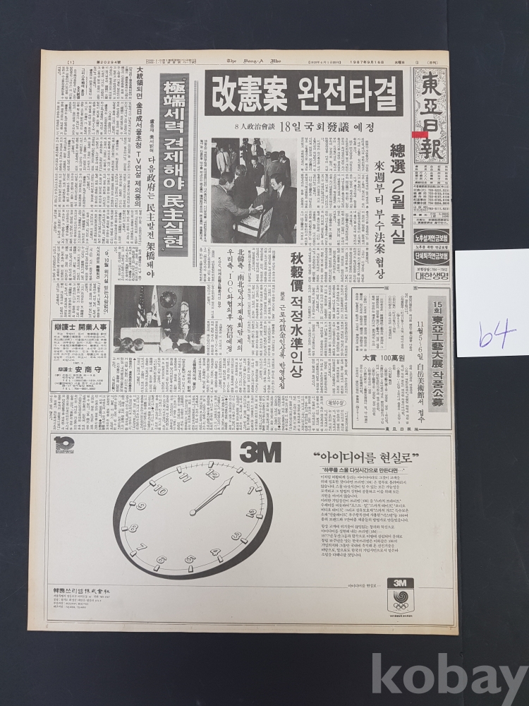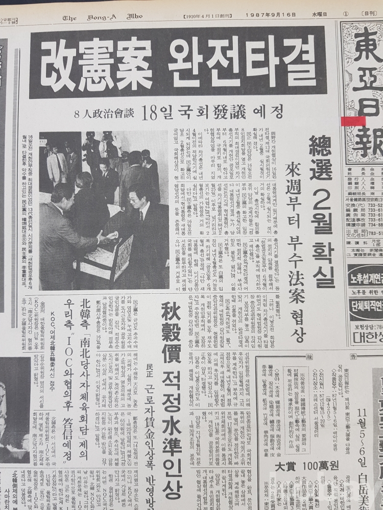 **** 1987.09.16(동아일보)/개헌안 완전타결 포함/약 12면