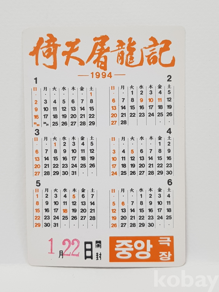 **** 영화카드*의천도룡기:마교교주/이연걸, 구숙정 주연/1994년 중앙극장