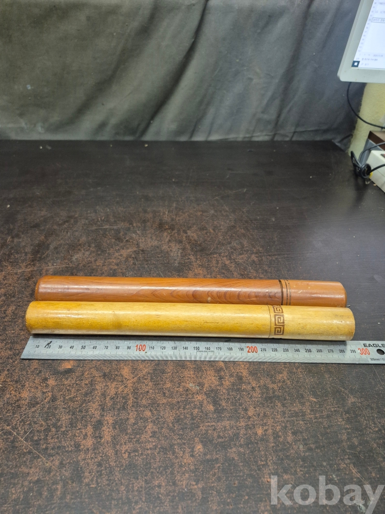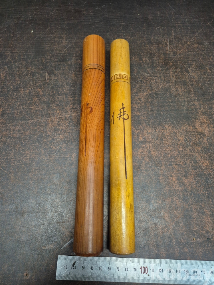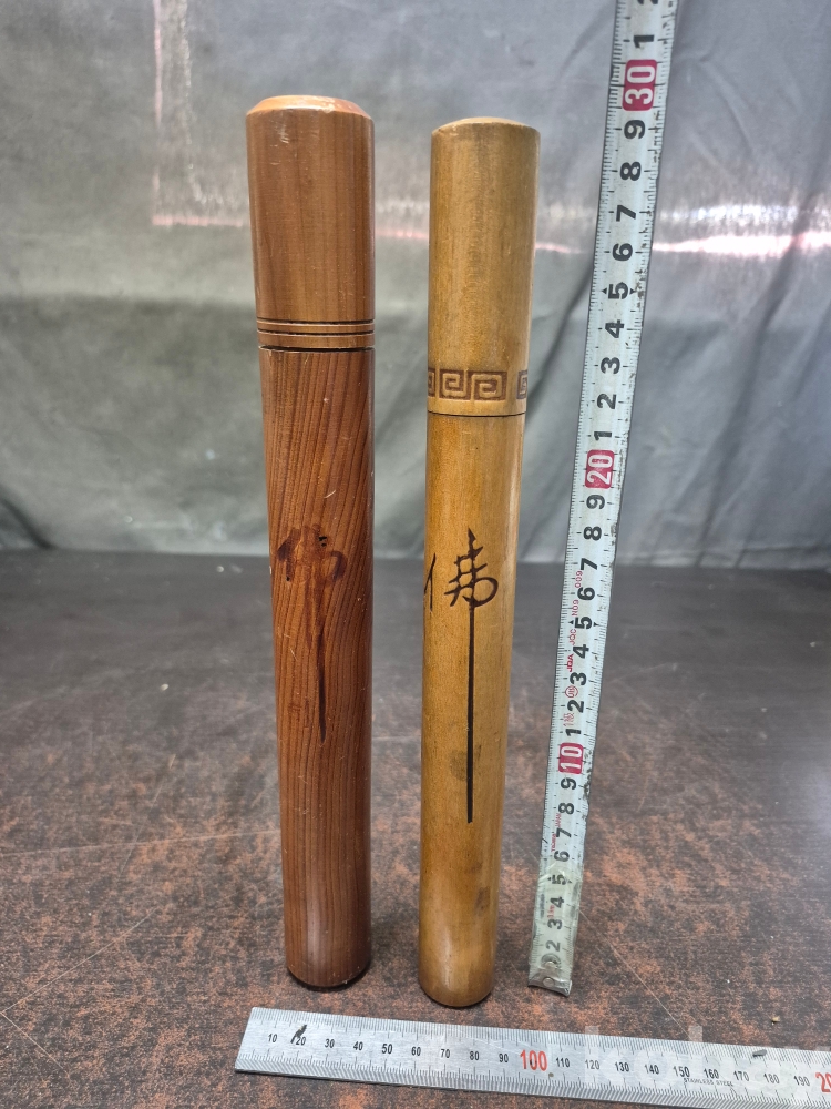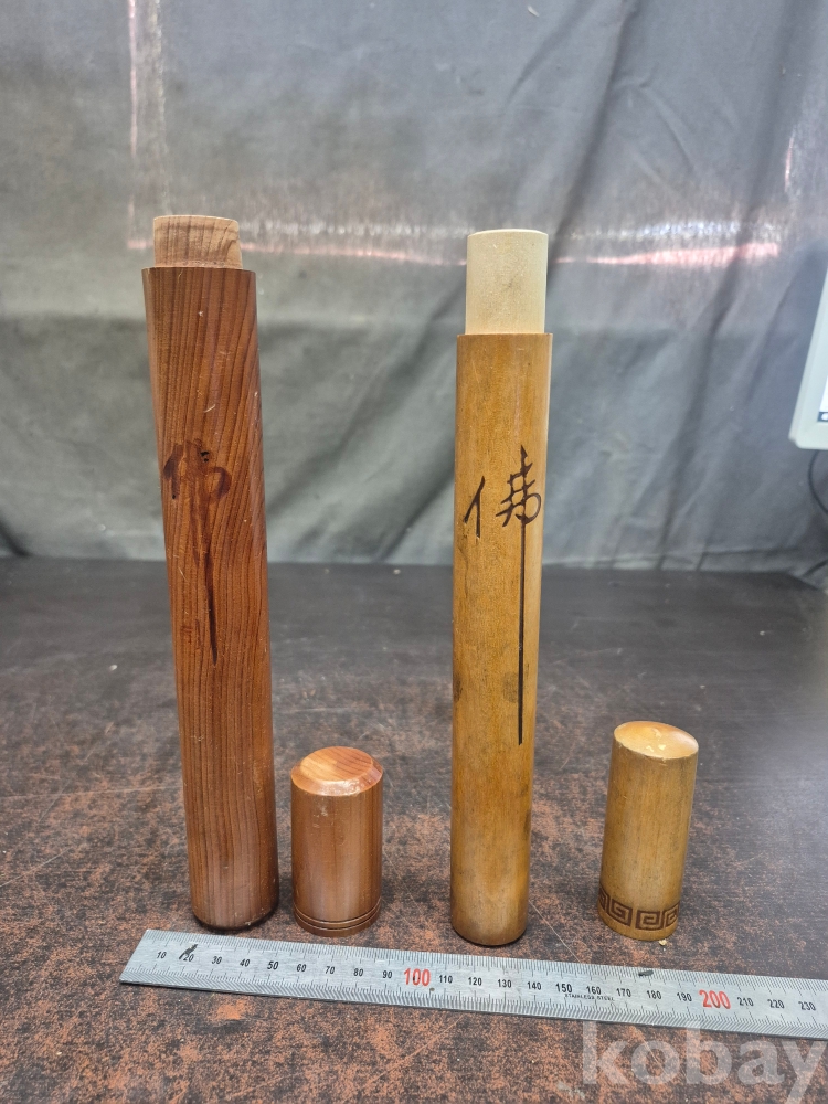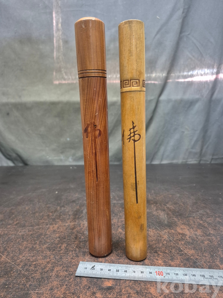 불자가 새겨진 원목을 깍아 만든 향통 2점 3*3*29