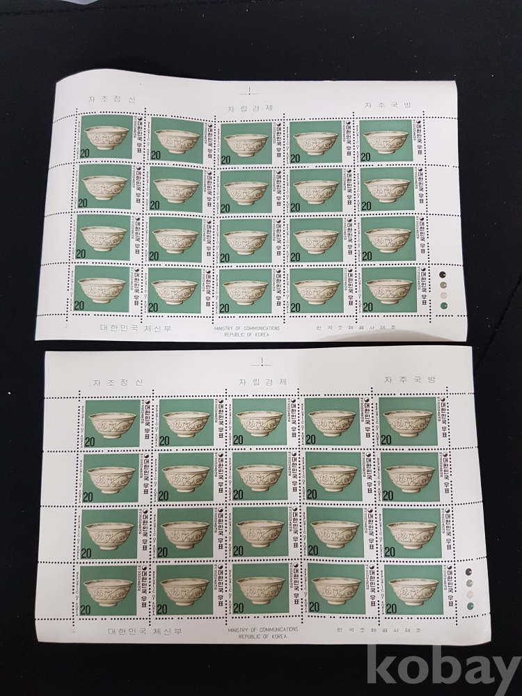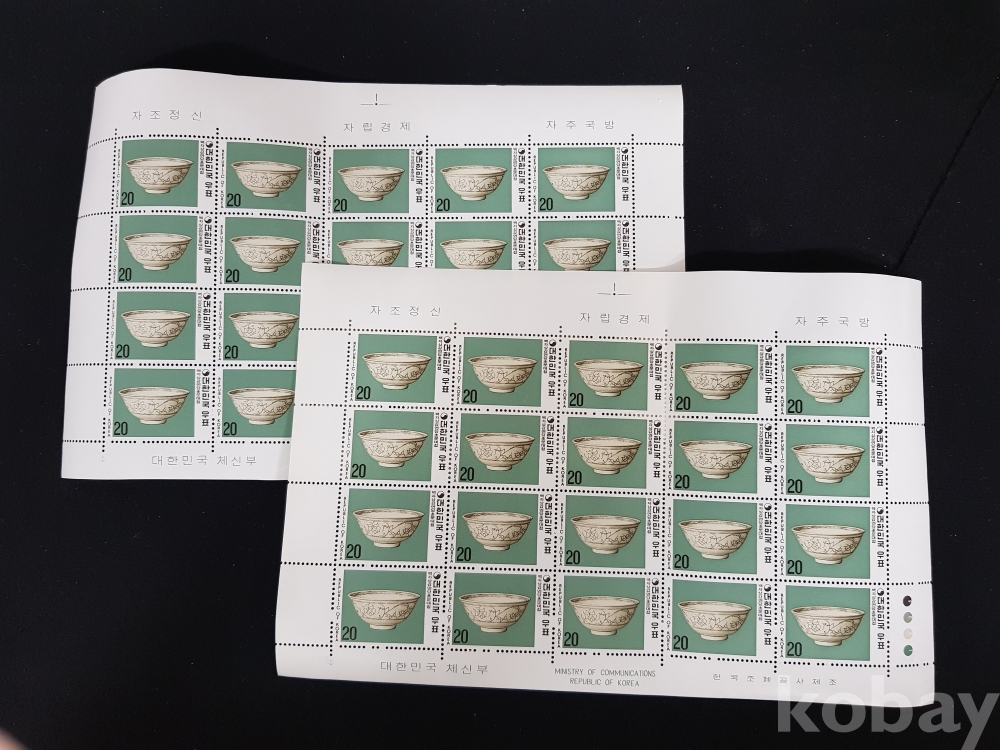 - 미사용 1977년 도자기 시리즈 제 4집 백자상감연당초문대접 전지 2매 일괄