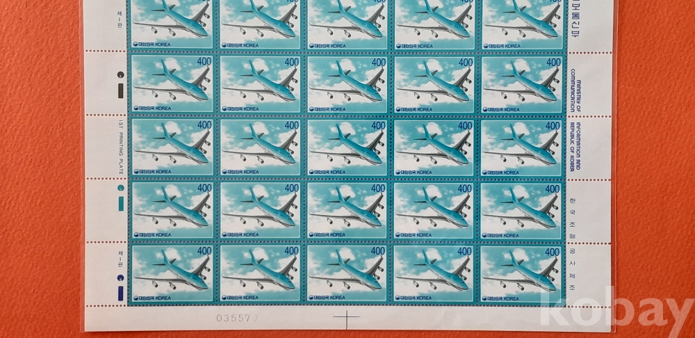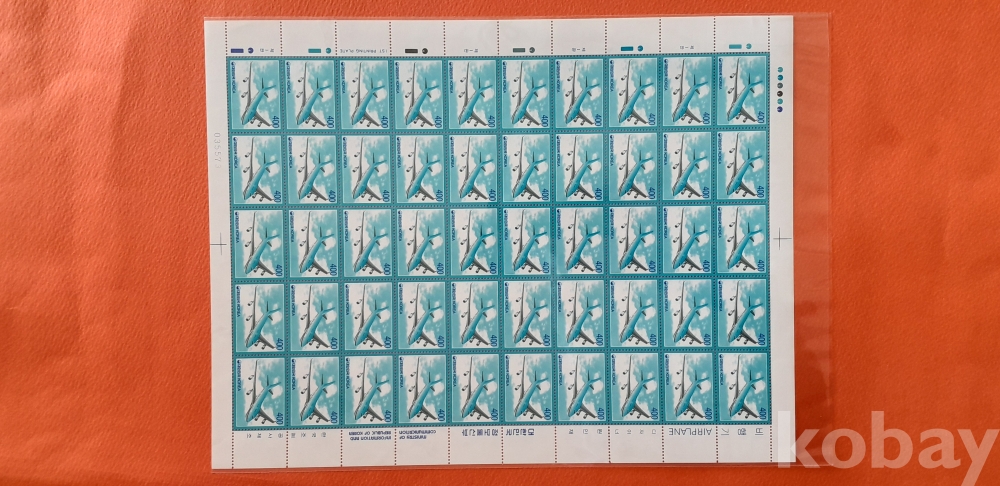 1995년 기본료 150원 시기 400원 비행기 50매 전지 입니다.