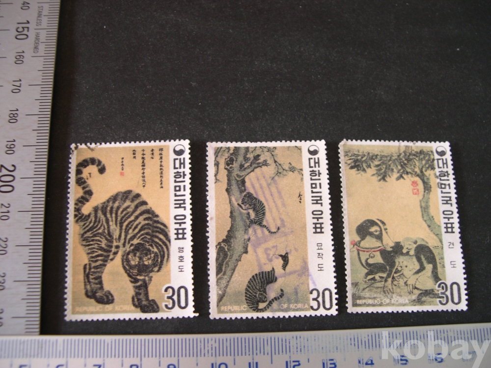 사용제 3종 #1130 : (맹호도 + 묘작도 + 견도) - 명화 (1970. 10. 30)
