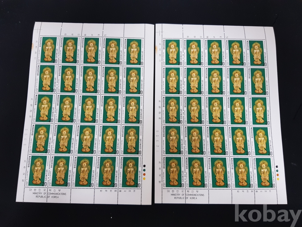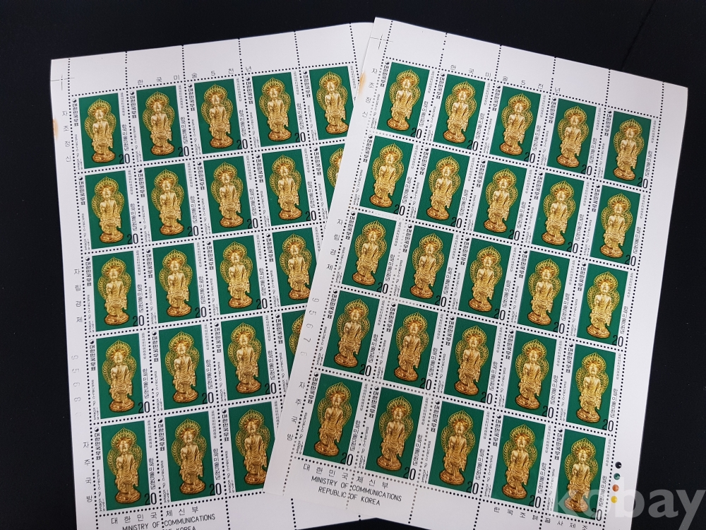 - 미사용 1979년 한국미술 5000년 제 4차 하금제아미타여래좌상 전지 2매 일괄