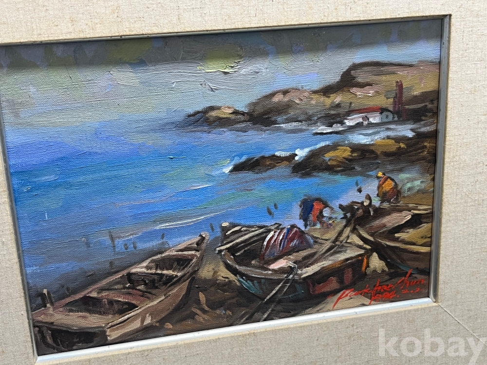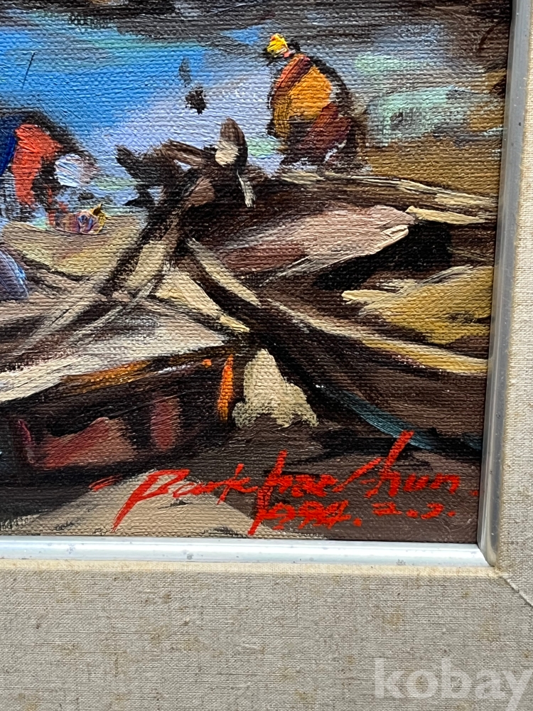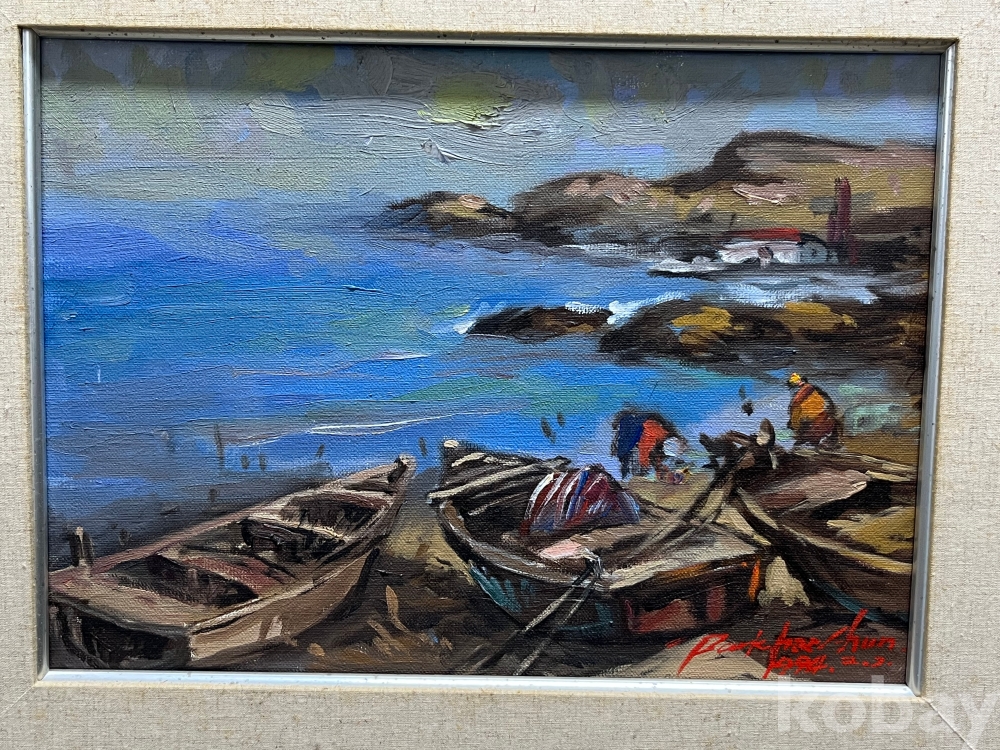 이 작품은 한국 근대 이후 서양화 흐름 속에서 자주 다루어진 어촌과 항구의 일상을 주제로 한 유화 작품입니다.