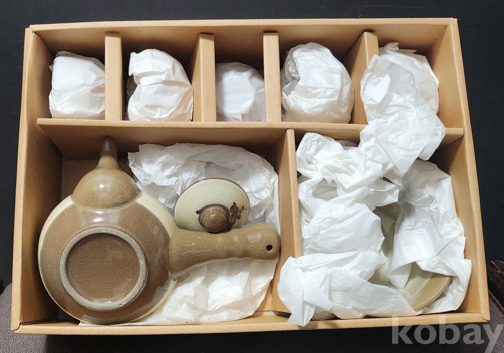 < 여주도자기 축제 전시 作 > 분청다기 粉靑茶器 < 미사용 박스 완비 작품 >