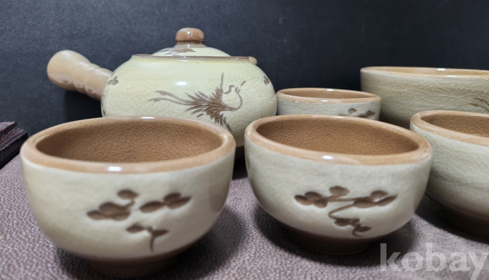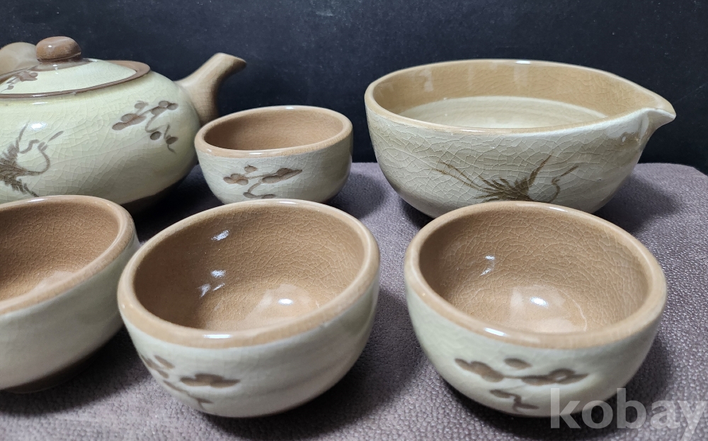 다관 10 x 20 x 15 숙우 7.4 x 15.5 x 14 찻잔 5.2 x 7.5 x 7.5