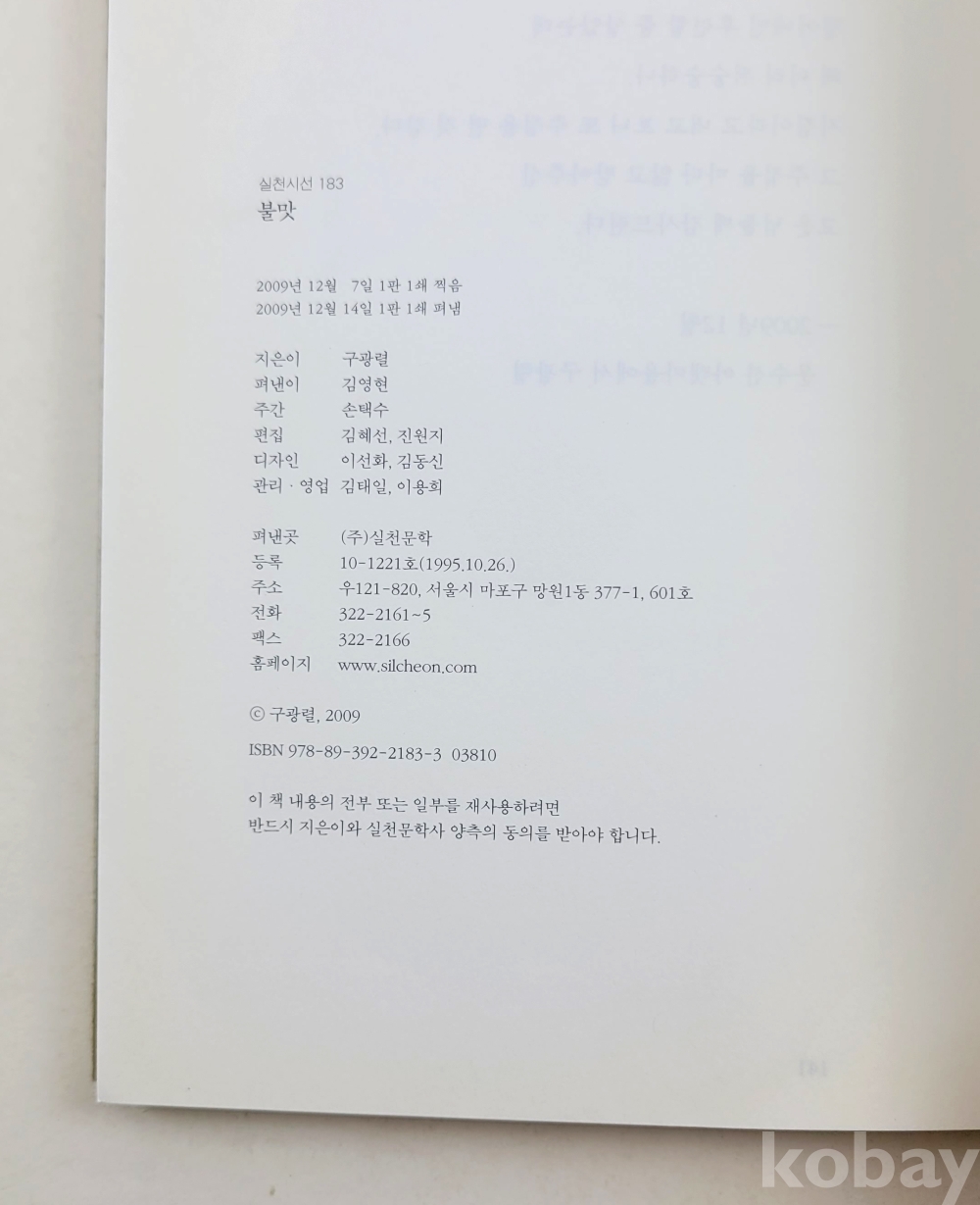 물 품 명 | 구광렬 / 불맛 / 실천시선(183) / 2009년 초판 / 실천문학 |
