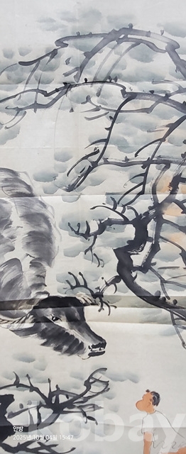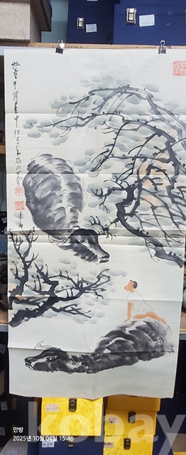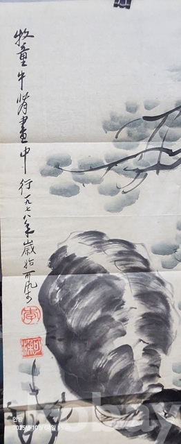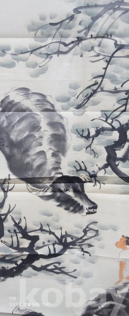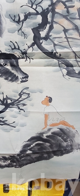 h-106.중국유명화가 이가영의동자와소(실체그린그림미감정)