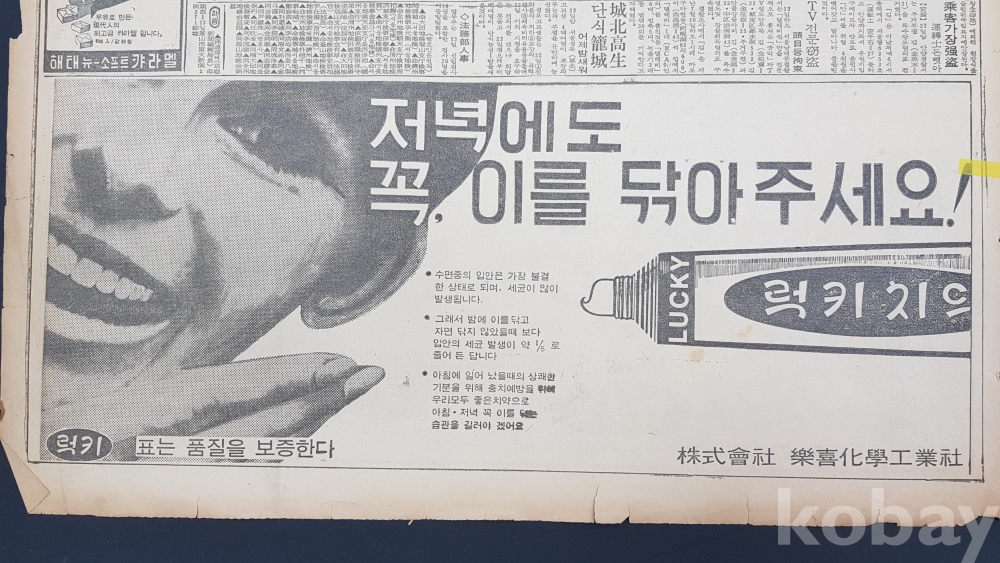 **** 1966.11.24(한국일보)/樂喜化學工業社 럭키치약 광고포함/약 4면