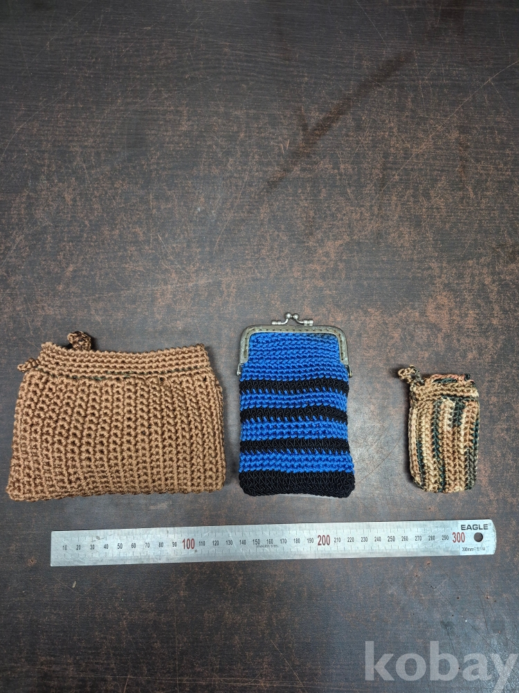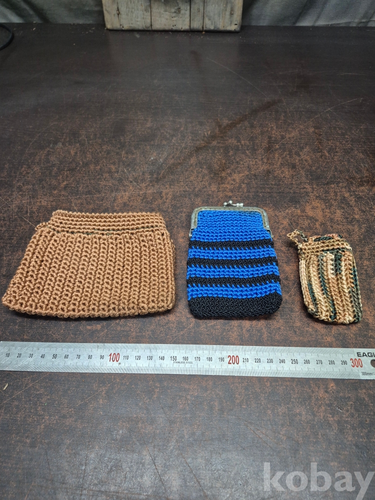 1980년대 손뜨개질로 만든 동전지갑 소형 지갑 3점 미사용품