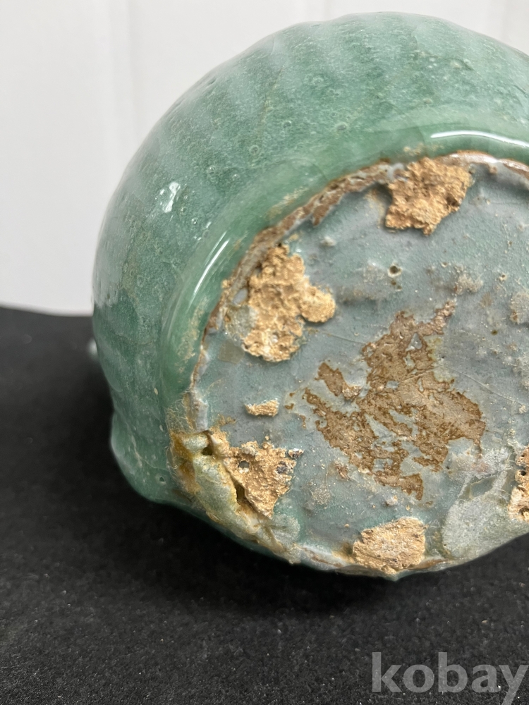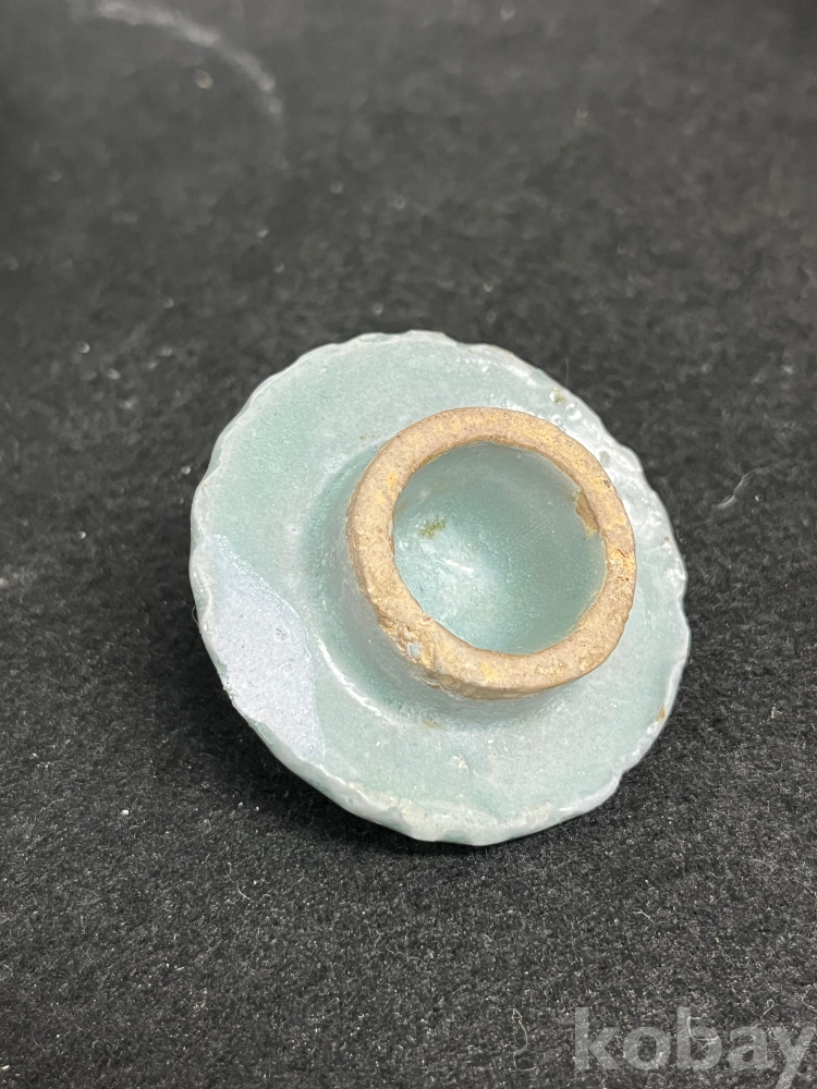 비색유를 띄며 연대감이 보이며 뚜껑안쪽 파손부위가 있습니다.