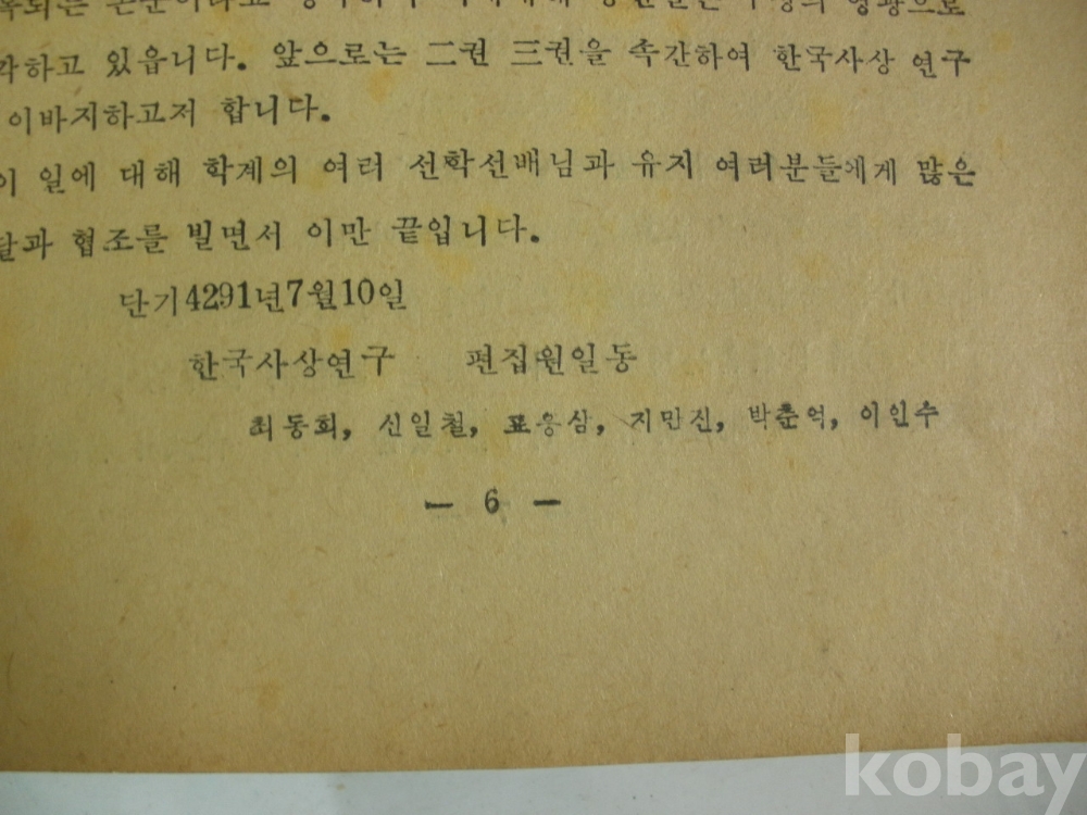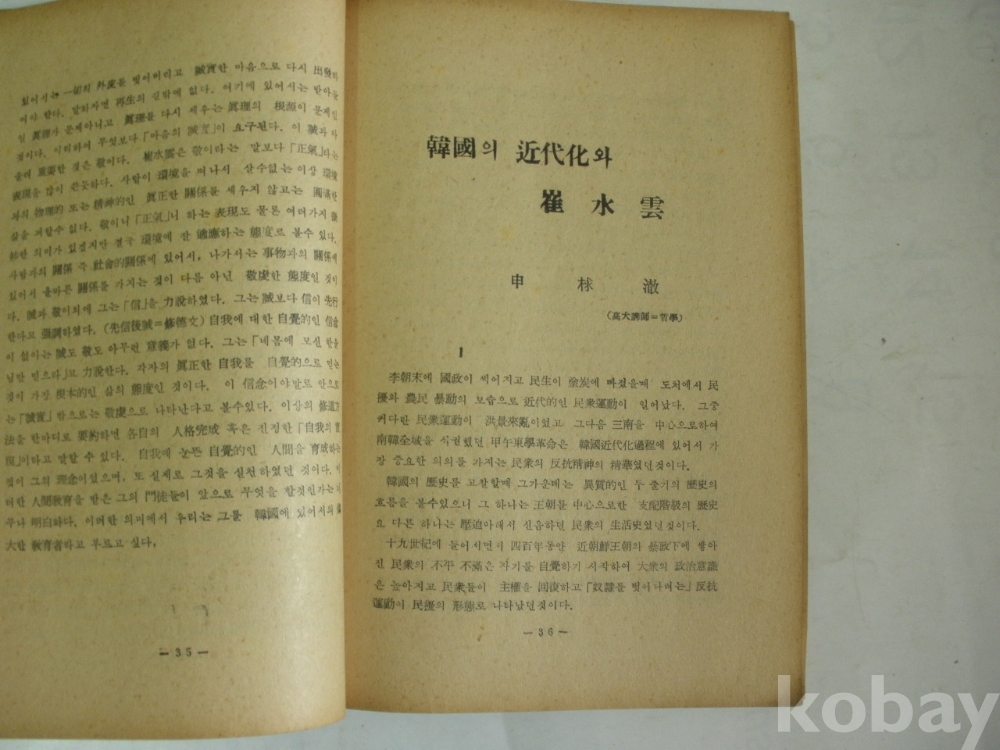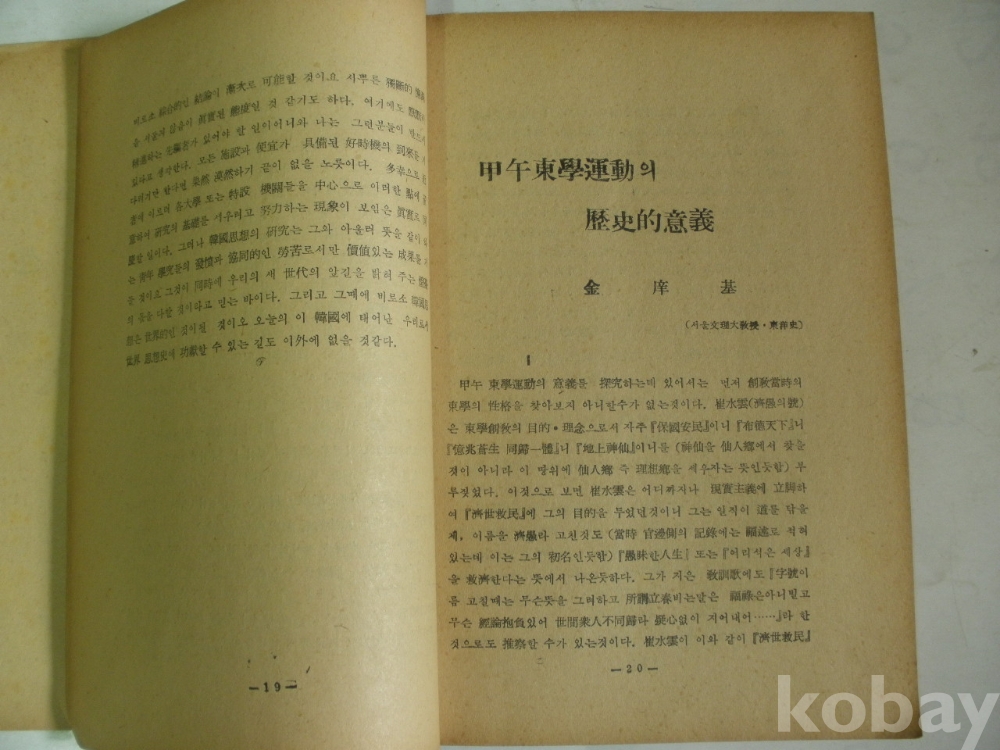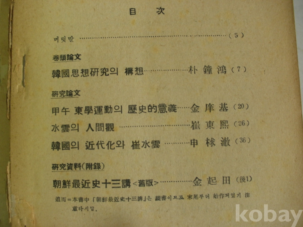 한국사상 - 갑오 동학운동의 역사적 의의, 한국의 근대화와 최수운 등 (1958년, 대성문화사)