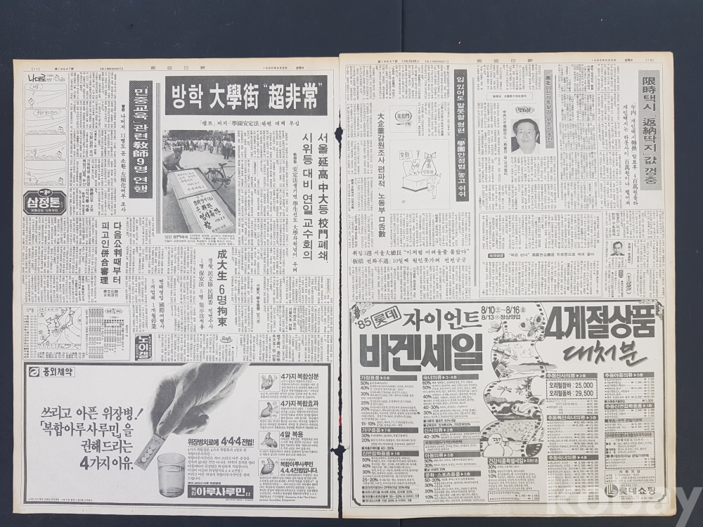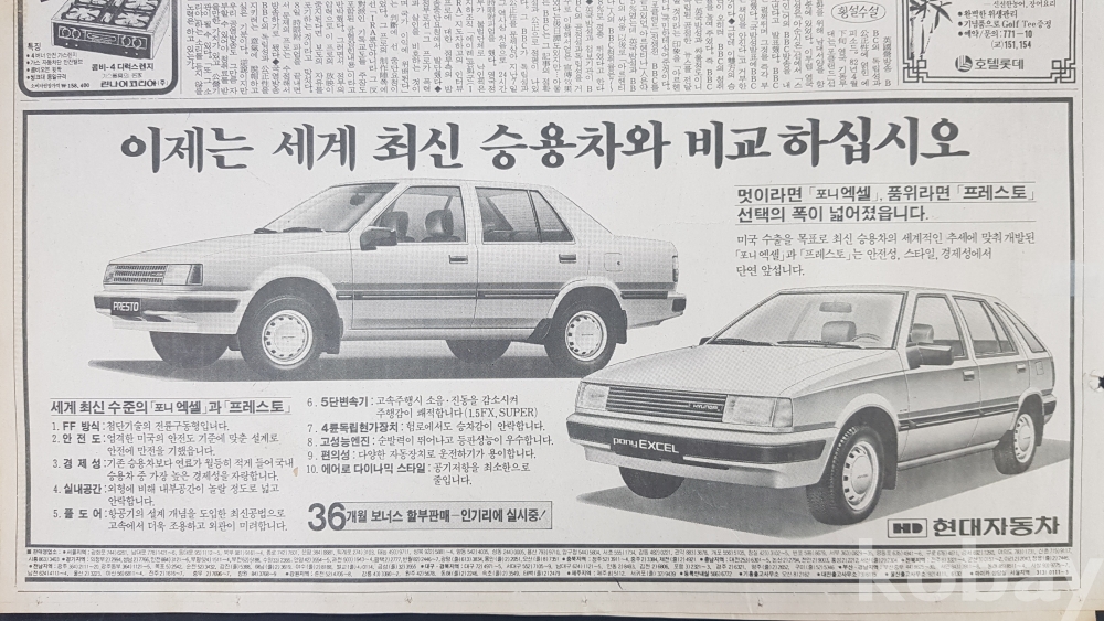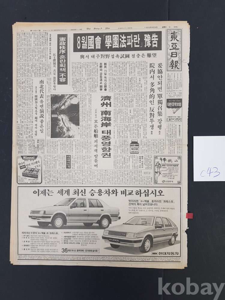 **** 1985.08.09(동아일보)/현대자동차 포니엑셀, 프레스토 광고포함/약 12면