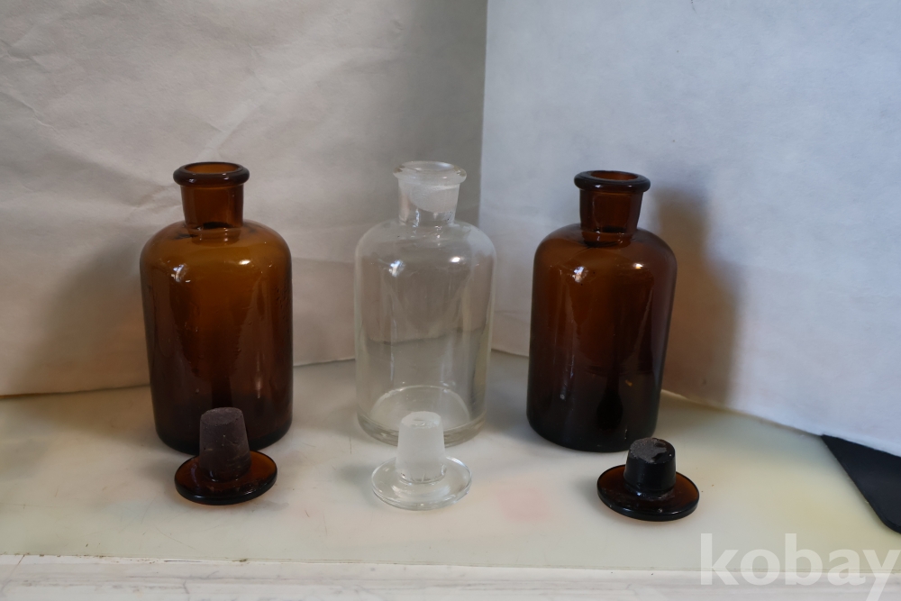 1930 대의 일본 멋진 뚜겅을 가진 병 3 세트 임니다 묘한 색감 등등 구하기 힘든 명물 임니다