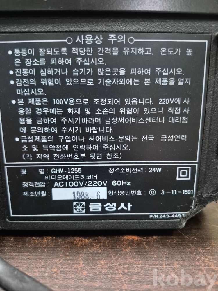 1988년 골드스타 비디오 플레이어 모델 GHV 1255 전원정상 플레이는 되지 않아요 소품용 자료용 43*35*11