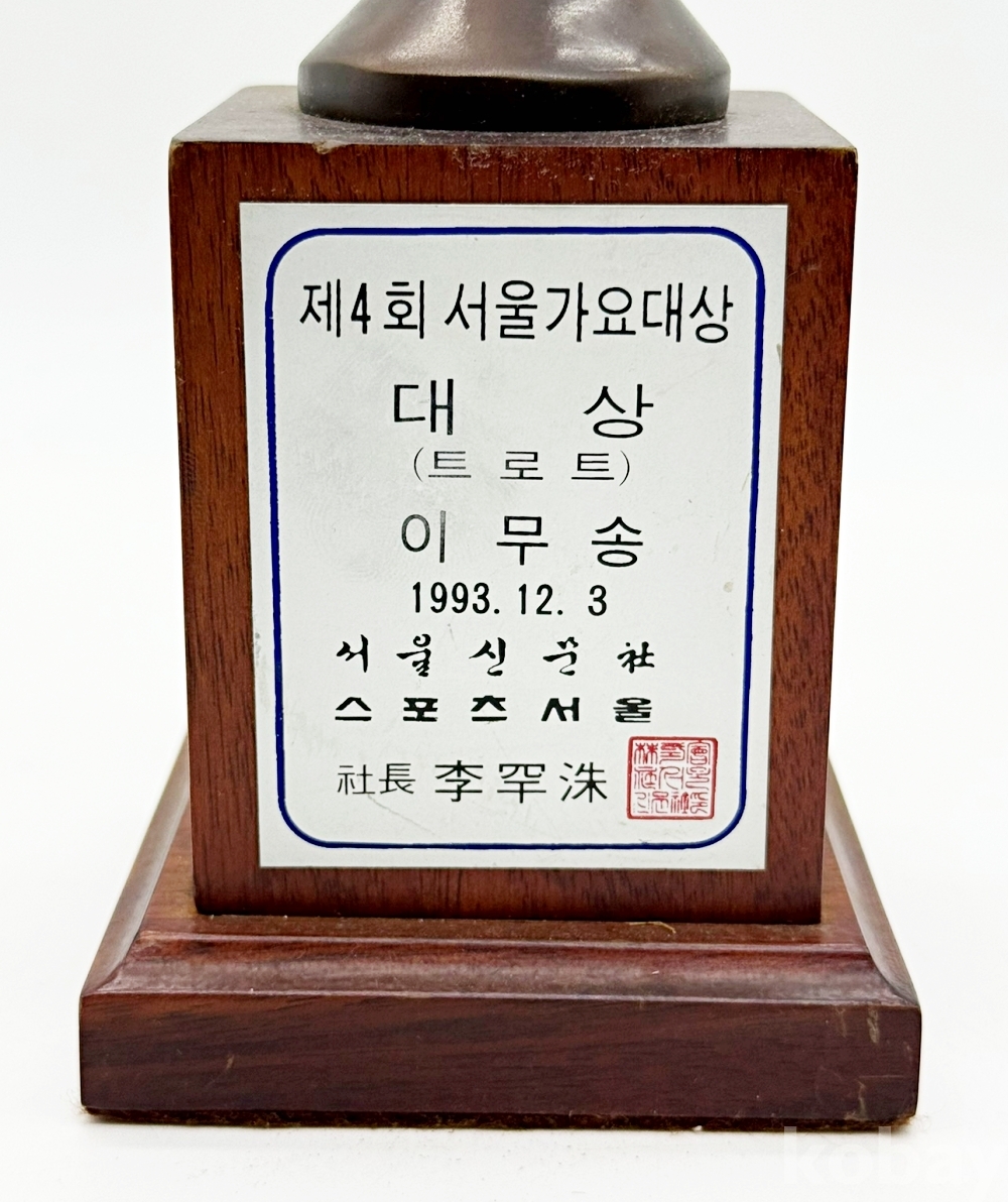 1993년 서울신문사, 스포츠 서울에서 주최한 제4회 서울가요대상에서 가수 이무송이 트로트 부문에서 수상한 '대상' 트로피이다.