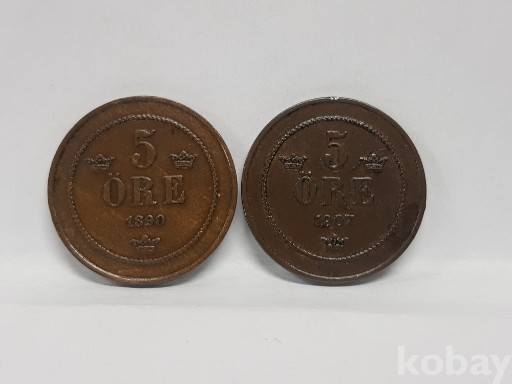 - 스웨덴 1890년 5 외레(Öre) 주화 등 2종 모음