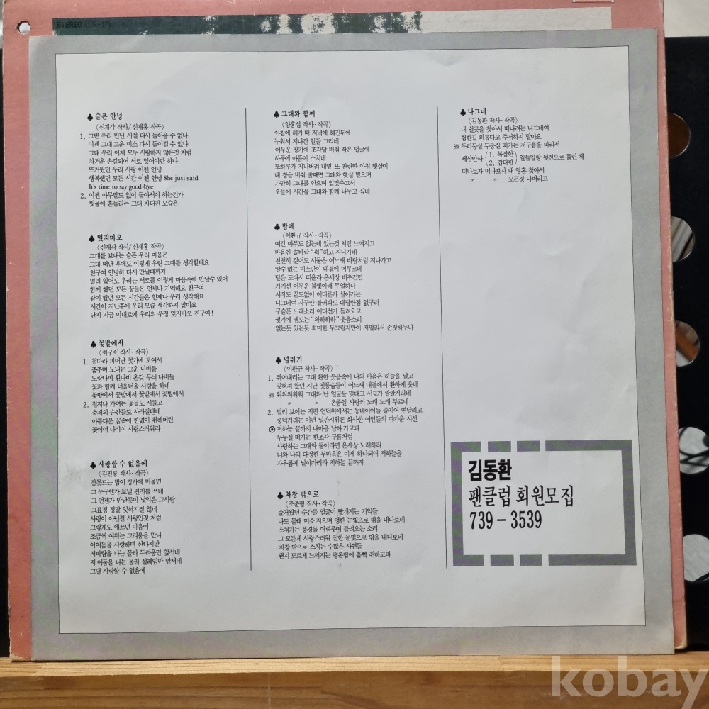 | 자켓상태 | EX : 약간의 마모, 모서리 찢김 존재 | 음반상태 | EX : 재생에 영향 없는 가벼운 기스 존재 | 발매정보 | 초반 | 가사지여부 | 유 |