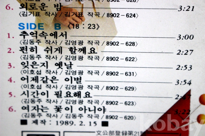수록 곡 목은 사진을 참조하시기 바랍니다