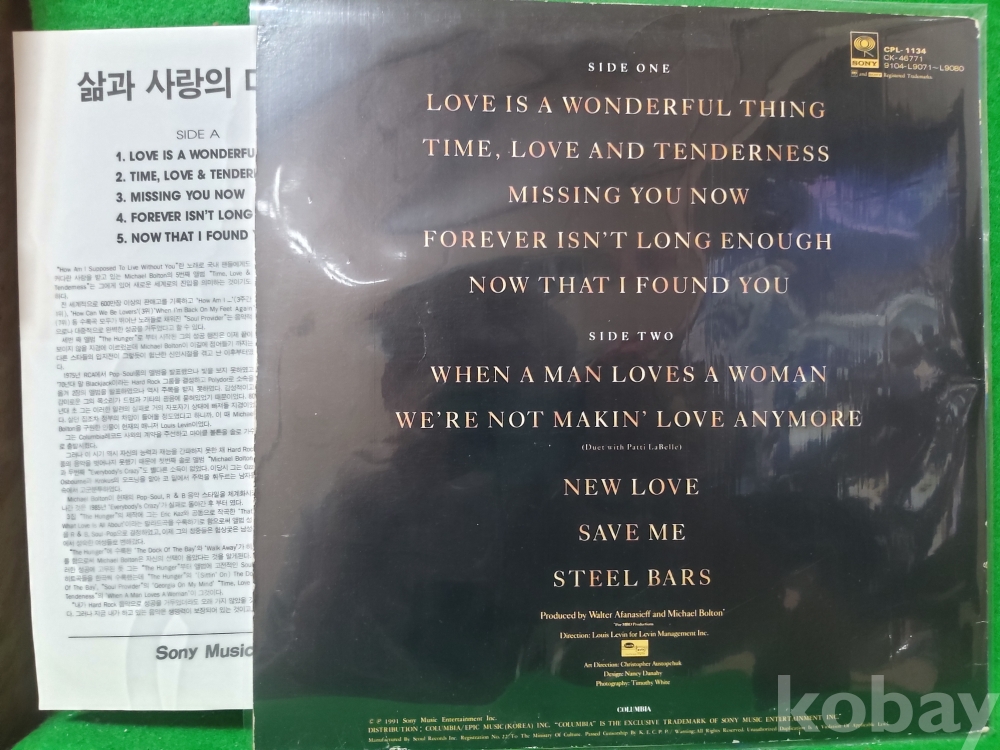 LP.레코드 = 팝송 - 마이클 볼턴 - TIME LOVE & TEN DERNESS