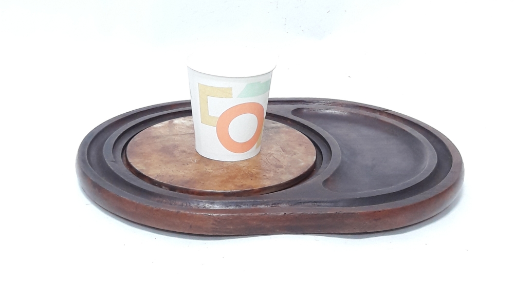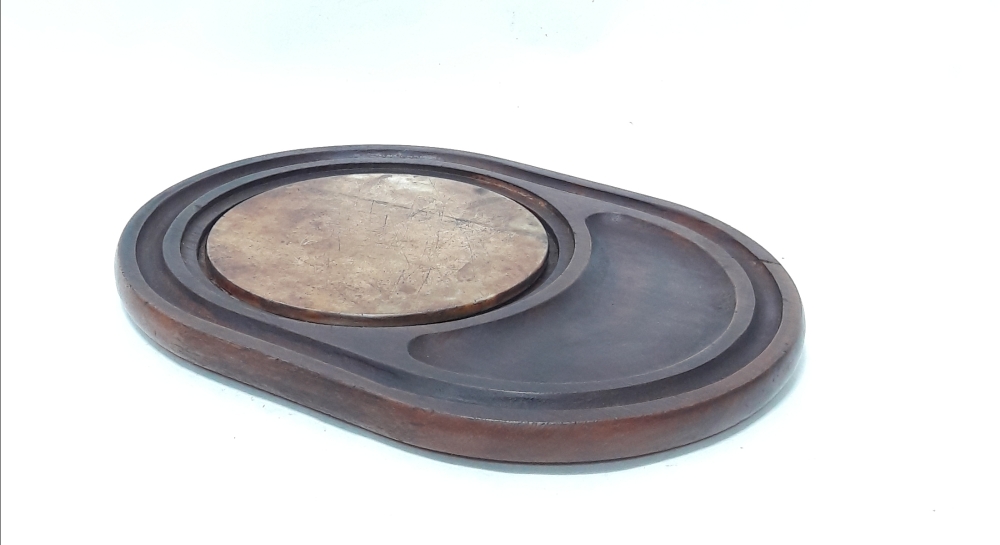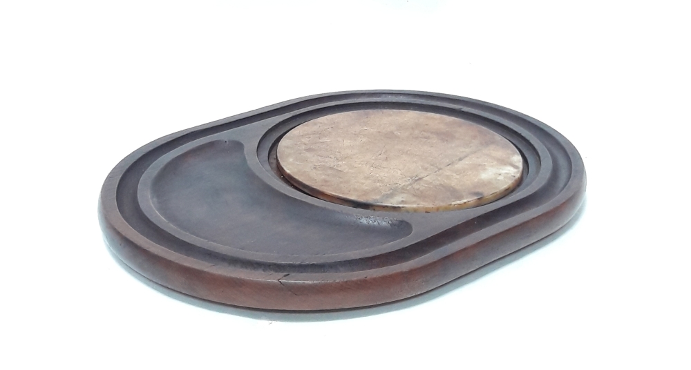 곱돌 바닥 받침이 깔린 다과 나무쟁반