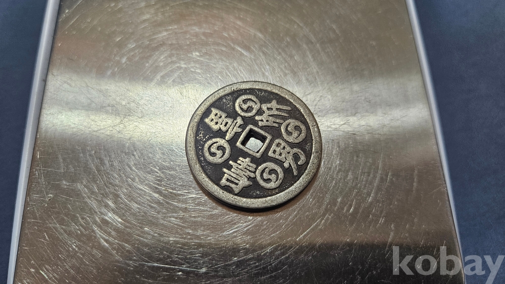 앞뒤로 태극문양이 들어있는 백동재질의 별전으로 여겨집니다.