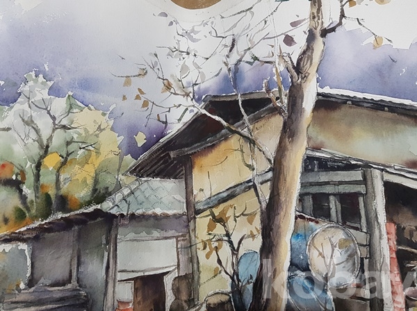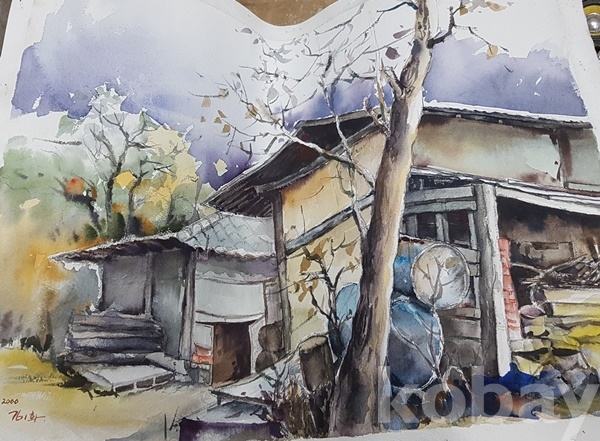 토담 잘그린 수체화 시골풍경그림 (작가사진참조)