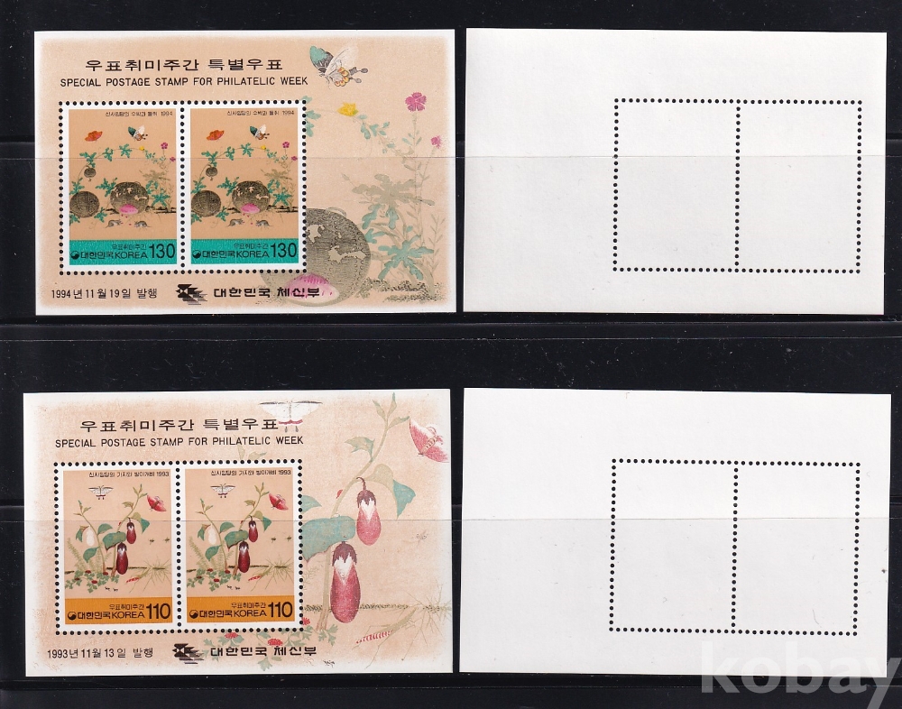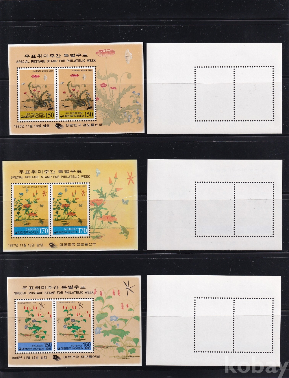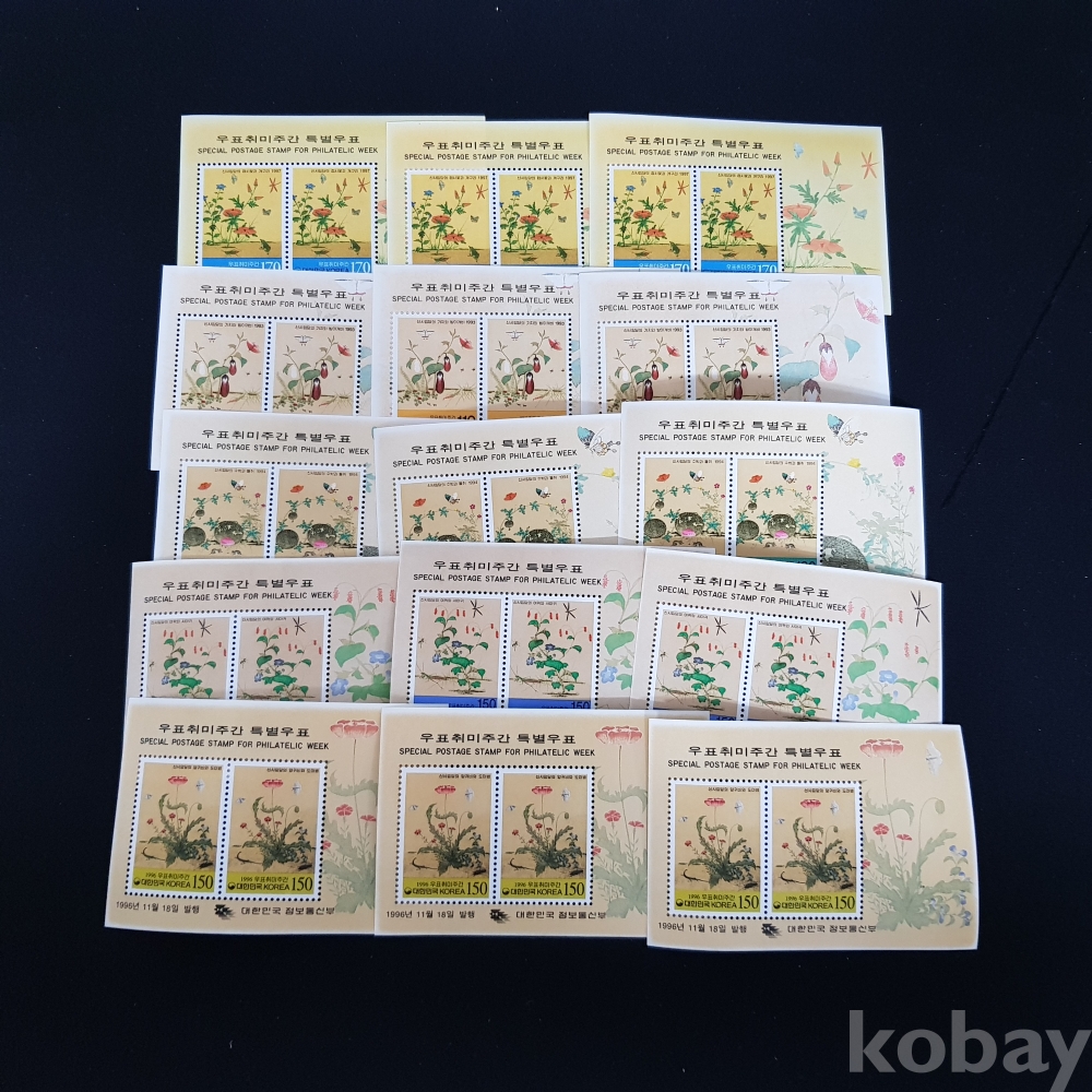 - 미사용 1993년~1997년 우표취미주간 기념시트 5종 15장 모음