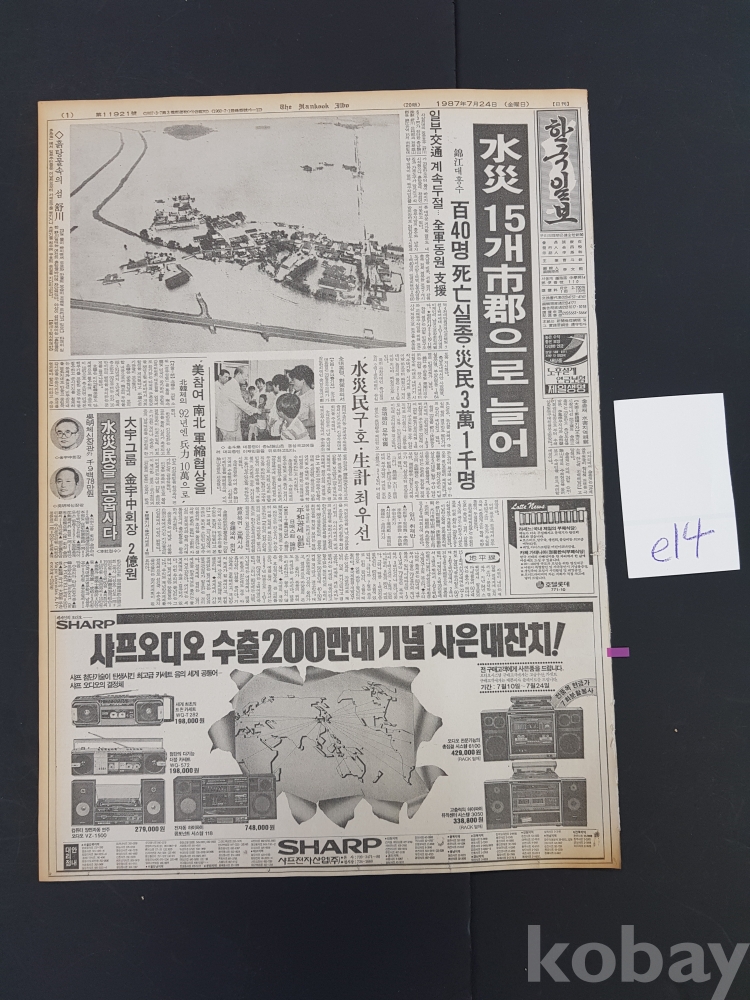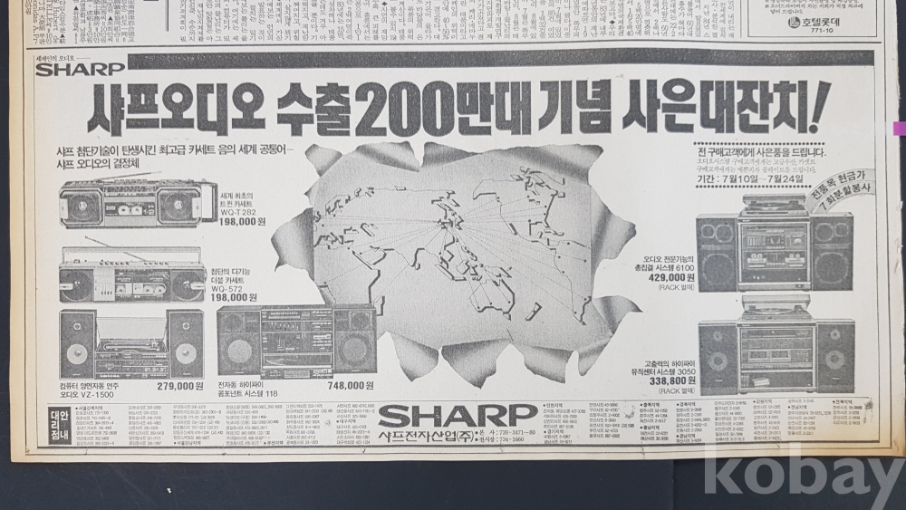 **** 1987.07.24(한국일보)/샤프전자산업(주) 샤프오디오 광고포함/약 12면