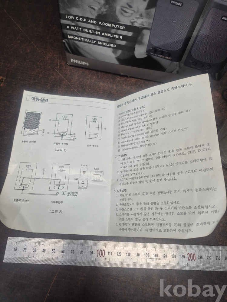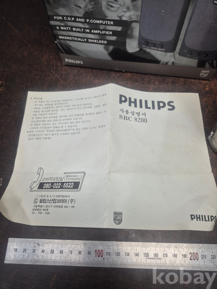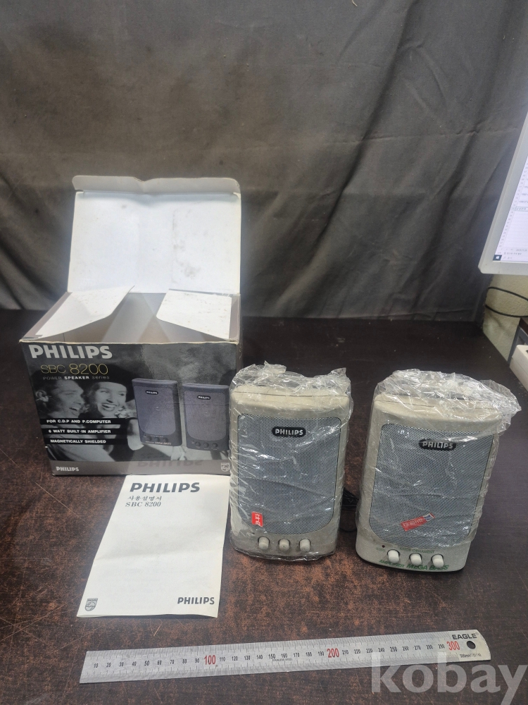 1980-90년대 필립스 컴퓨터용 미사용 스피커 모델 SBC 8200 메이드 인 프랑스 22*14*18