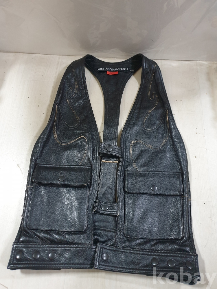 {천원경매}12-0850 가죽 베스트 끈 조끼(L/XL) (허리단면39cm,벗겨진곳 있음)
