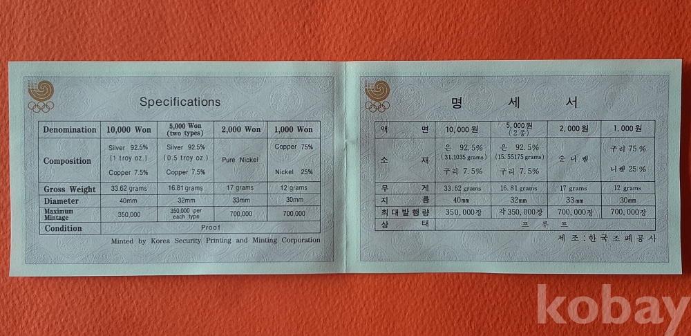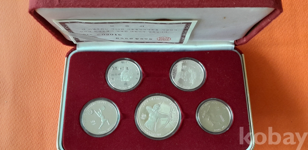 서울 올림픽대회 기념 무광프루프 은화 5종 세트(4차) 입니다.
