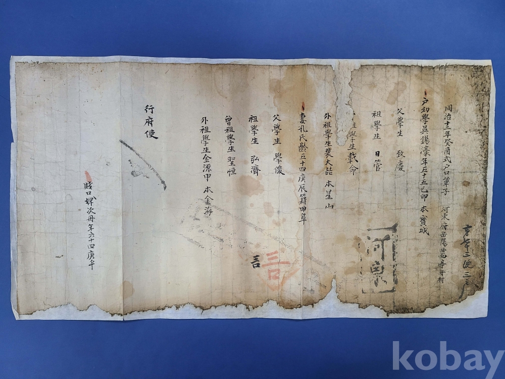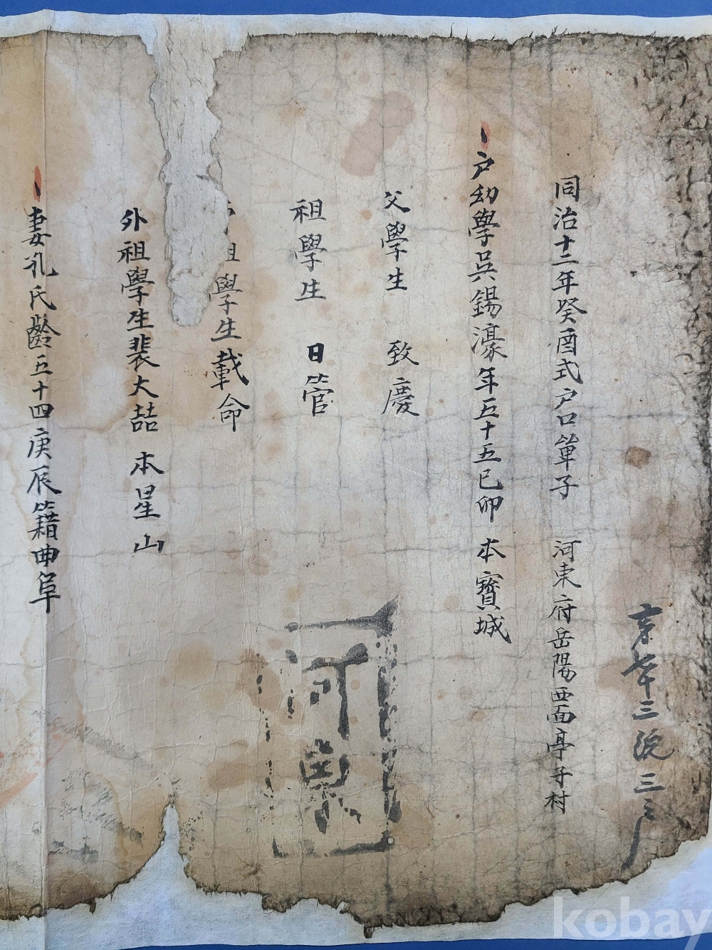 同治12년(1873년) 河東府 安岳西面 戶口單子/탈락부 있음.후면 배접