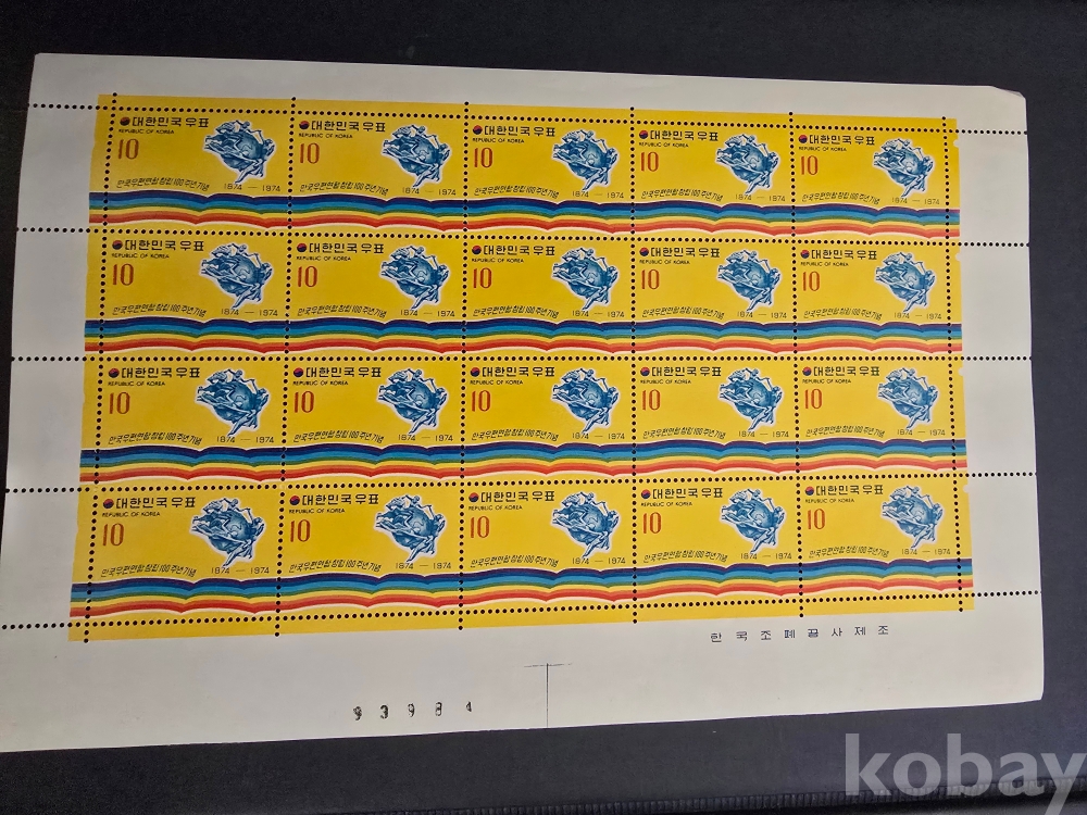 미사용 명판우표/ 74'10.9만국우편연합창립100주년