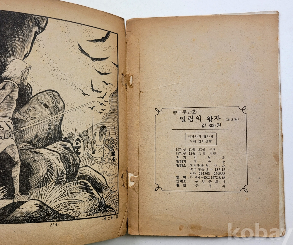 물 품 명 | 김청운 / 밀림의 왕자(2) / 1974년 초판 / 펭귄만화문고(2) / 청자각 |