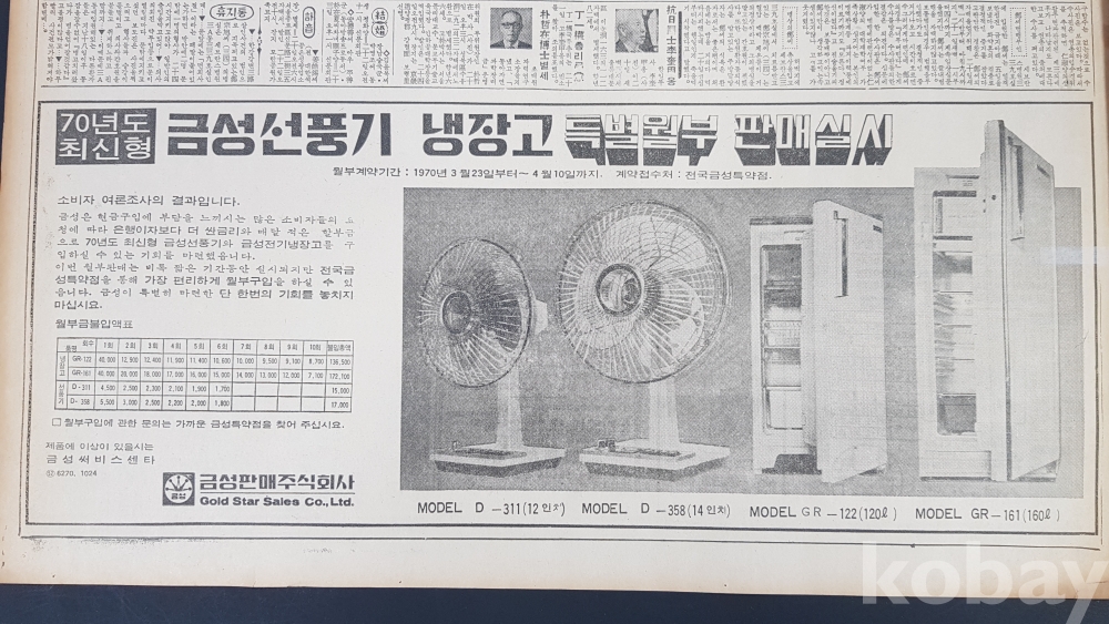 **** 1970.03.21(동아일보)/금성판매주식회사 금성선풍기 등 광고포함/약 8면