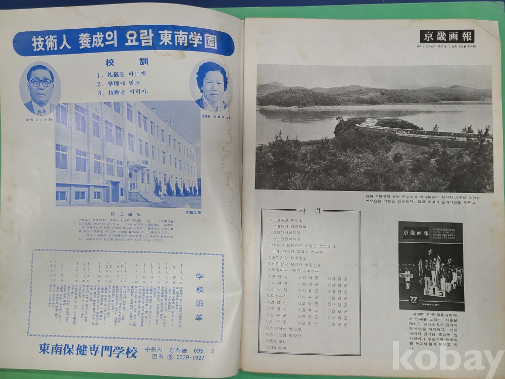 京畿畫報 ‘77 가을호/경기신문사 발행,72쪽/앞표지,뒷표지 물먹은 흔적,얼룩흔적/뒷부분