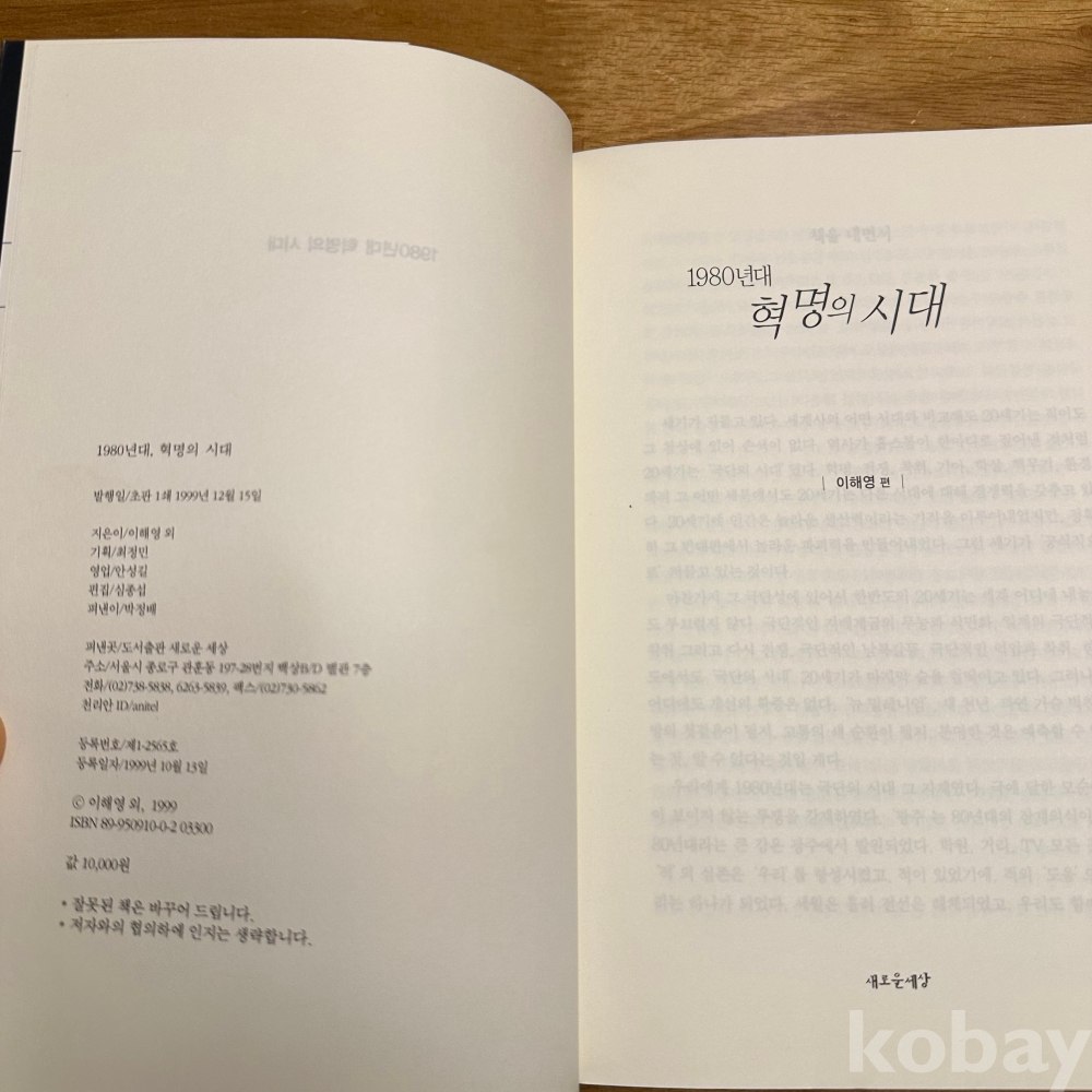 [한국현대사, 민중문화운동, 노동운동] 이해영 편, <1980년대 혁명의 시대>, 새로운 세상, 1999, p. 401, 상태 중급(사진참조)
