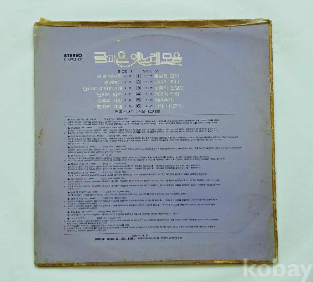 EX : 약간의 마모, 모서리 찢김 존재 음반상태