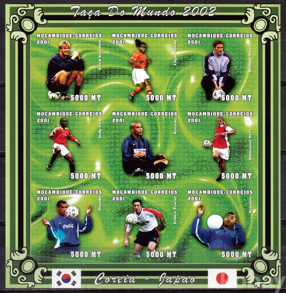 (월드컵) Mozambique(모잠비크) 2002 한.일월드컵 축구대회 David Beckham외 무공 sheet of 9 MNH