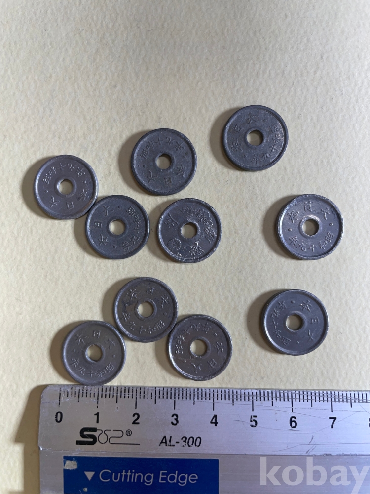 1940년대 발행 일본 5전 주화 10개입니다.