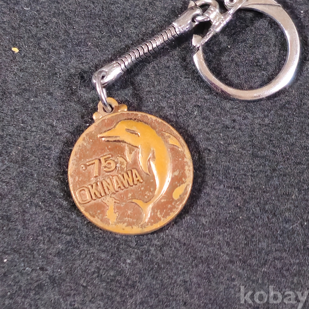 (((키링/키홀더/열쇠고리/가방걸이))) 1975 일본 OKINAWA 박람회기념 돌고래 양각 금속재질 키홀더