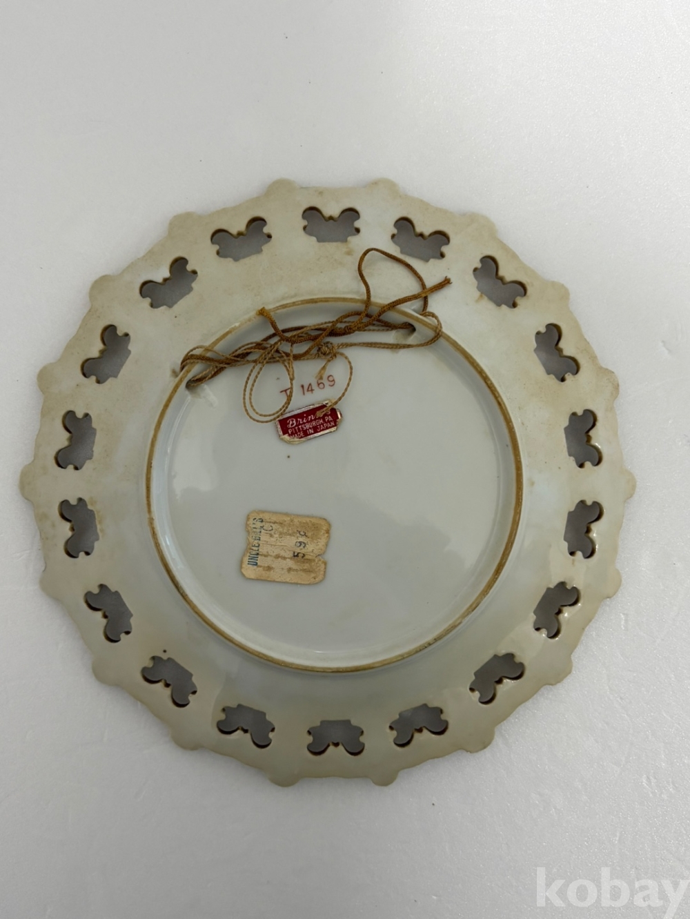 벽에 걸 수 있는 구멍이 있는 앤티크 백자 투각 접시입니다.