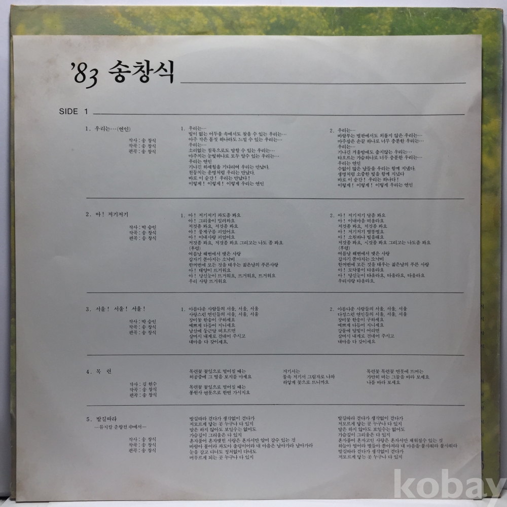 LP 81,300-57 83 송창식 - 우리는 / 푸르른 날 자켓 EX+ 알판 NM 83 년 국내반