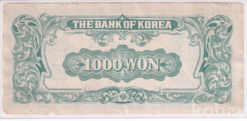 - 한국은행 1950년 최초의 1,000원권인 이승만 한복 천원 일본인쇄 지폐 입니다.
